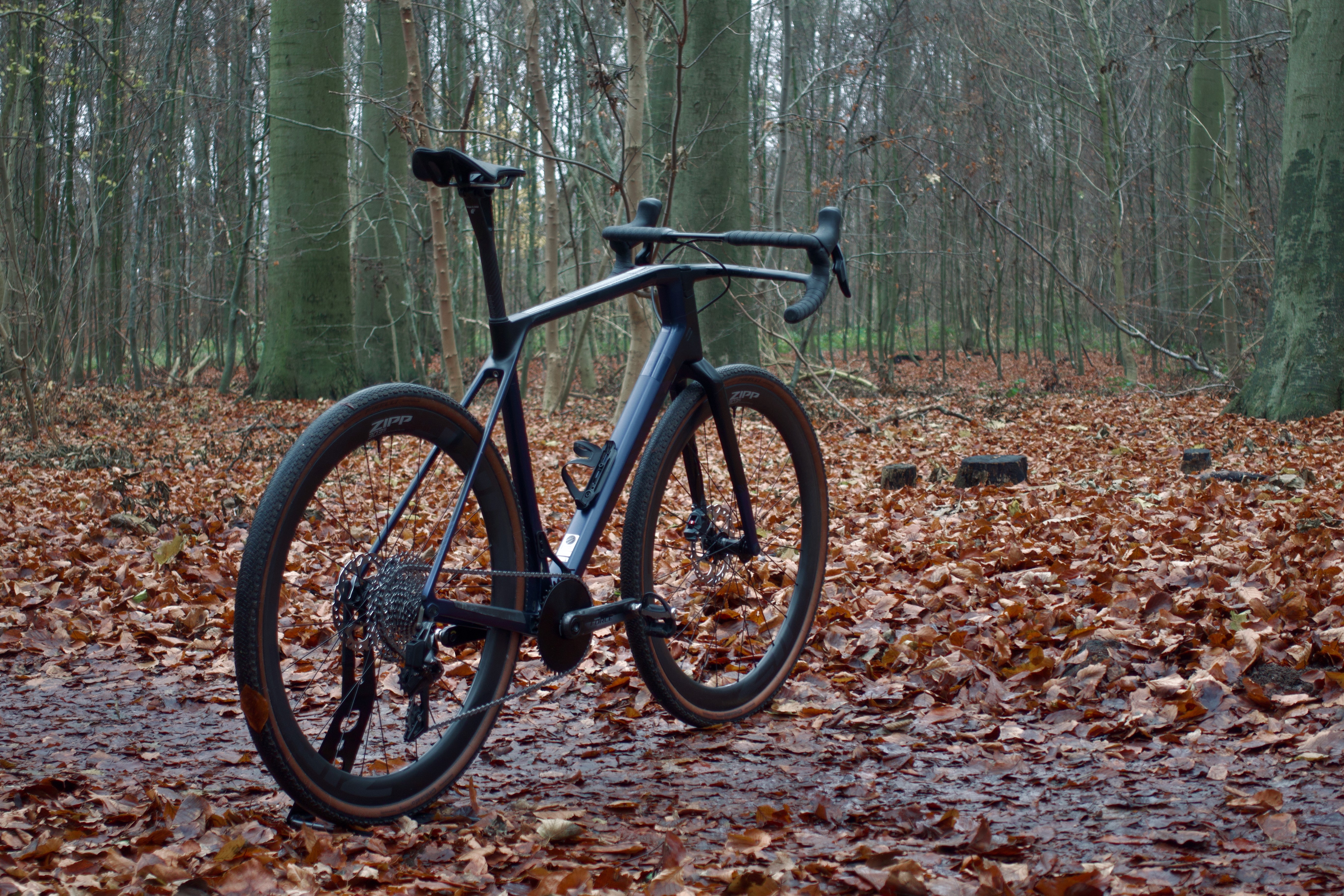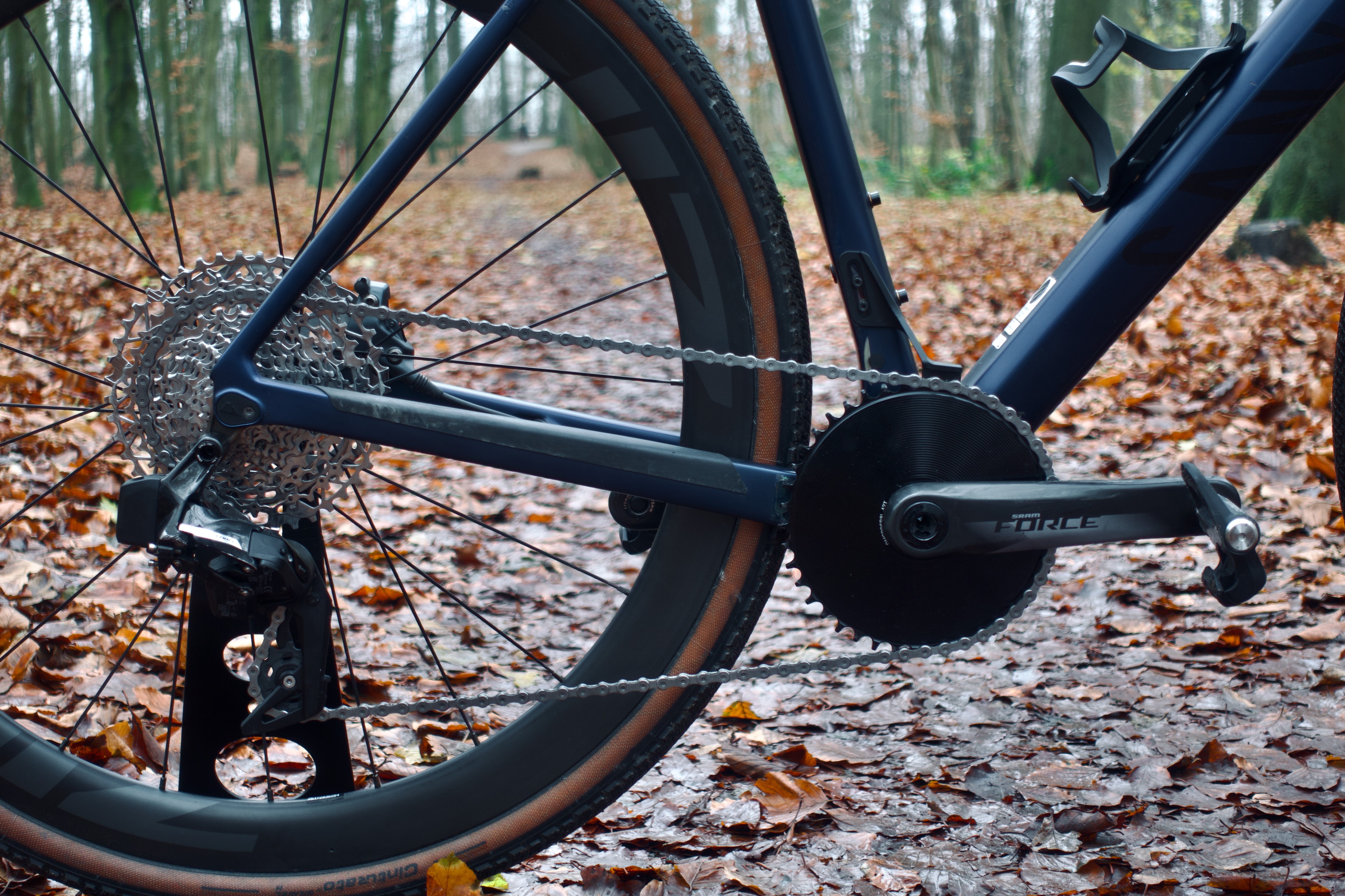 Cyklen er udstyret med den elektroniske SRAM Force eTap AXS XPLR geargruppe med hydrauliske skivebremser. Med 1x12 opsætningen, 42T klinge foran og 10-44T kassette bagpå, får du et bredt gearområde. Den ruller på hurtigt et sæt hurtige Zipp carbon hjul, der er sat op tubeless med Pirelli Cinturato 40 mm dæk.
