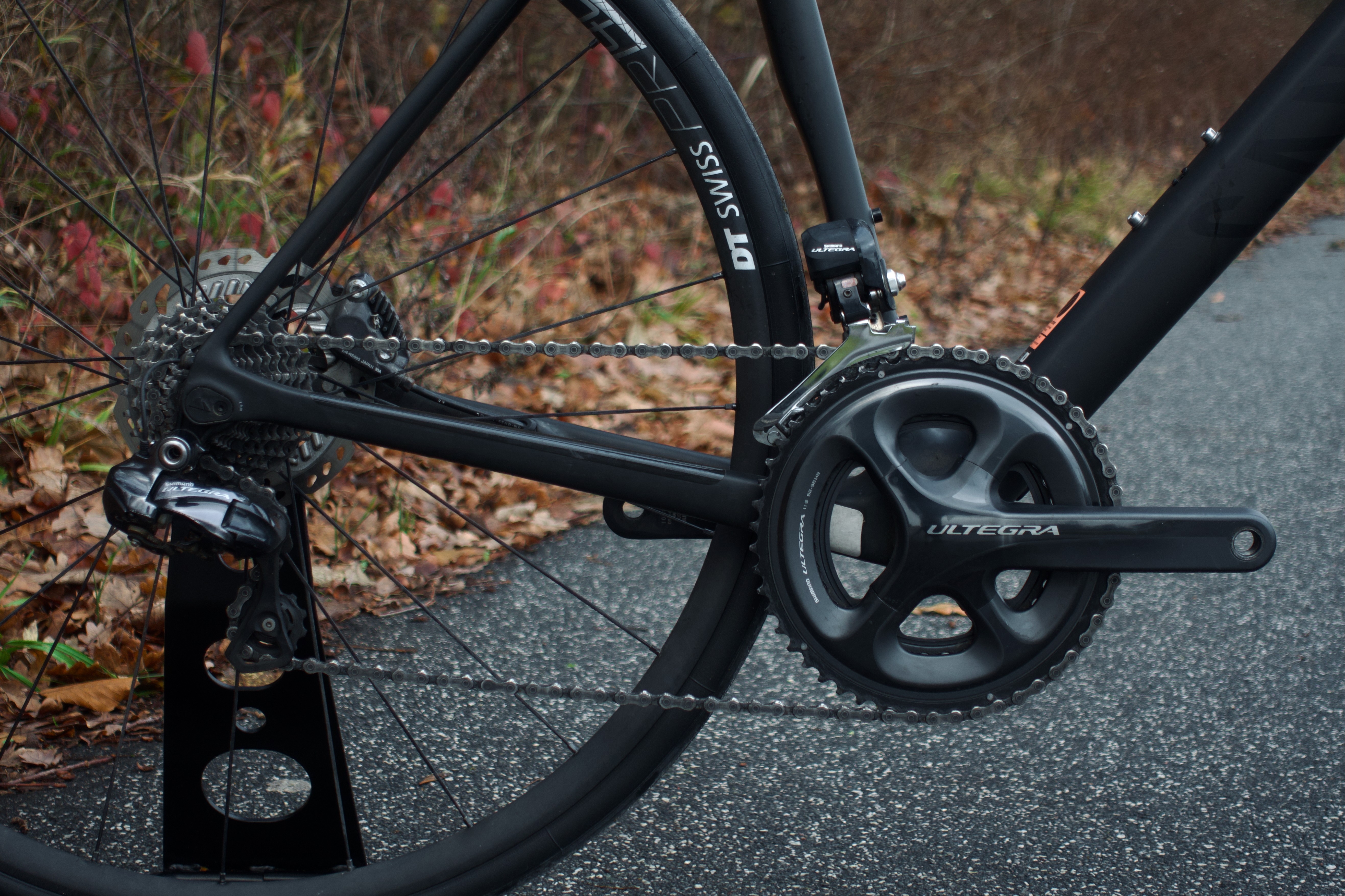 Cyklen er opgraderet med den elektroniske Shimano Ultegra Di2 geargruppe og hydrauliske skivebremser. Den ruller på et sæt DT Swiss PR 1400 Dicut aluhjul.