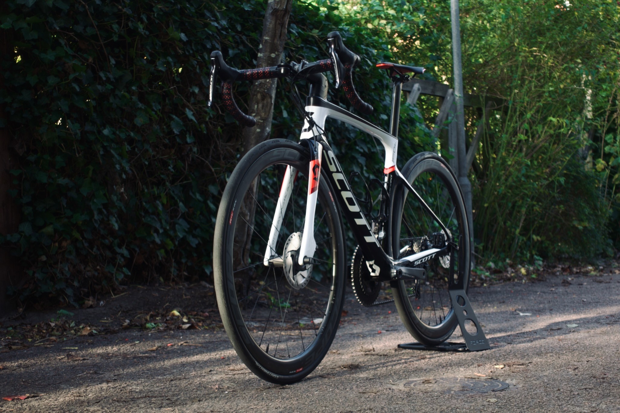 Cyklen er opgraderet med et sæt hurtige Scope R4 carbon hjul, der sikrer høj fart og god stabilitet.